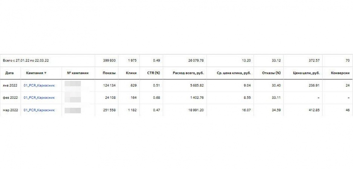 В феврале мы поставили на паузу рекламу, заказчик решил взять помощника на обработку заявок. В марте работа возобновилась.